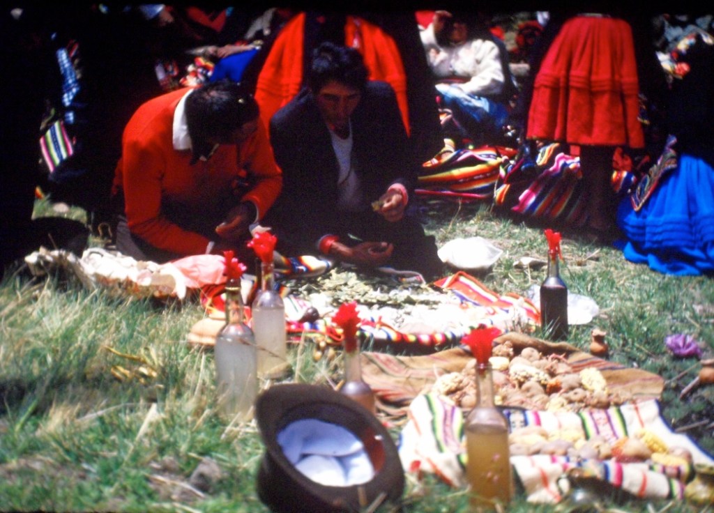 Peu après notre décision de partir, notre fils s’est annoncé. C’est donc un an plus tard que nous avons pris avec lui l’avion pour le Pérou. Il avait trois mois… Sur place, il était constamment avec nous. Il passait volontiers de bras en bras, éveillant beaucoup de sympathie. Nous avons peu à peu pris pied à Puno, avec le but de travailler sur l’île d’Amantani. Proche des Indiens, j’apprenais à connaître plus concrètement leurs pratiques, tout ce qui découlait de leur cosmologie que j’avais approchée lors de mes études. C’était passionnant. Sachant que leur sagesse était en train de disparaître, j’avais à cœur de valoriser leur culture, y compris leur artisanat.