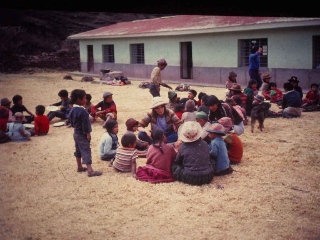 À la fin de cette année pleine d’activités diverses – car en plus de mes cours et des activités au centre Gandhi, je pratiquais la sculpture sur bois et le tissage – , je suis partie au Pérou pour la première fois. C’était en été 1981. Mes études théologiques à Lumen Vitae m’avaient mise en contact avec des personnes du monde entier, en particulier d’Afrique et d’Amérique latine. Chacun m’invitait dans son pays. Je choisis le Pérou qui, depuis l’enfance, était l’un des pays qui m’attirait. Pendant quelques semaines, j’appris l’espagnol pendant mes trajets à pied, dans le tram et dans les files d’attentes… j’avais toujours ma méthode Assimil en mains. En juillet, je travaillai dans une colonie de vacances sur la côte belge, ce qui me permit de payer le vol. Le mois suivant, j’étais au Pérou pour cinq semaines, qui m’ont paru une année.